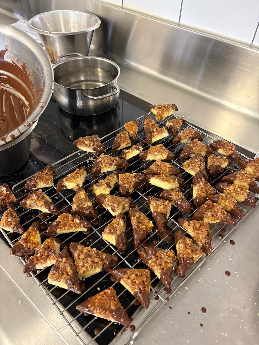 Unter dem Motto "Süßes für den guten Zweck" backen unsere Schülerinnen und Schüler Kekse in der Küchenpraxis für die Aktion "Steirer helfen Steirer" auf Hochtouren. Diese Projekt wird auch vonden Bäuerinnen des Bezirkes Deutschlandsberg unterstützt und so werden die vielen Kekse gemeinsam mit viel Sorgfalt abgepackt und beim Schlosskaffee an der Schule verkauft.