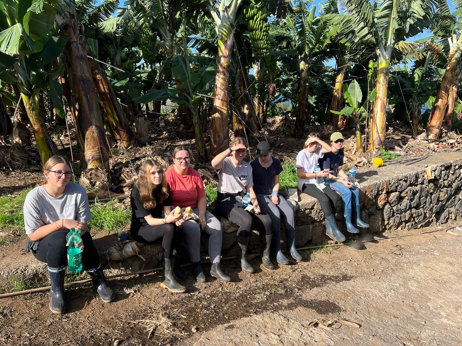Im Rahmen des ERASMUS-Programms hatten acht Schülerinnen die Gelegenheit, ein besonderes Praktikum auf einer Bananenplantage in Teneriffa zu absolvieren. Begleitet von Frau Doupona sammelten sie wertvolle Erfahrungen und erhielten spannende Einblicke in den Anbau und die Verarbeitung von Bananen. Neben der praktischen Arbeit auf der Plantage, wurde ebenfalls die Schulbank gedrückt. Außerdem standen auch kulturelle Erlebnisse und der Austausch mit den Einheimischen im Mittelpunkt.