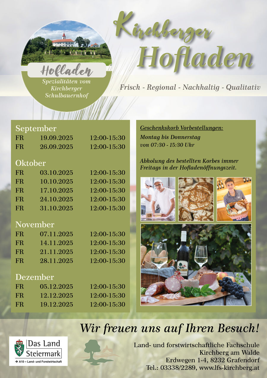 Hofladen Öffnungszeiten September bis Dezember 2025
